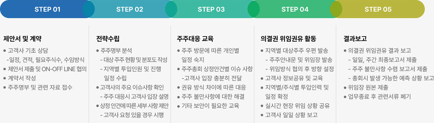 안건 가결을 위해 전국에 있는 주주들의 의결권 위임장을 확보하여