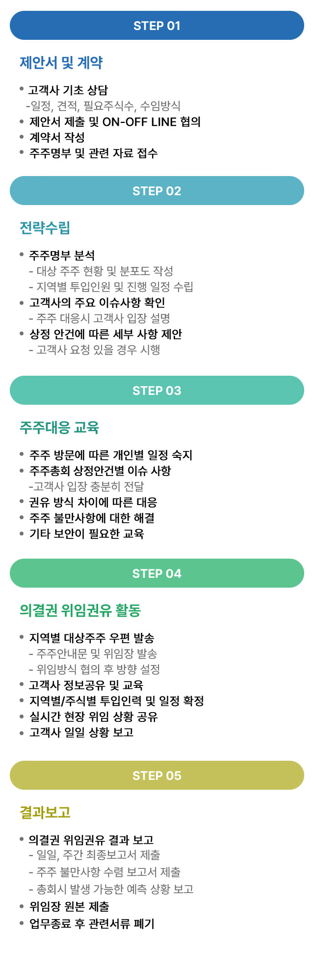 안건 가결을 위해 전국에 있는 주주들의 의결권 위임장을 확보하여